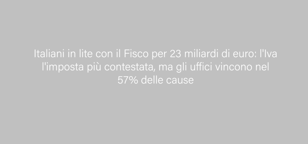 Italiani in lite con il Fisco per 23 miliardi di euro: l’Iva l’imposta più contestata, ma gli uffici vincono nel 57% delle cause